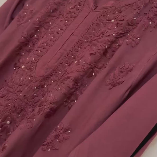 FIESTA - Brown Gold Embroidered Festive Chikankari Kurti